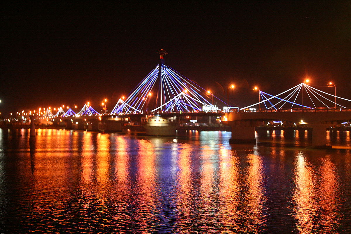 Uống nước xong các bạn tranh thủ đi ngắm cầu Sông Hàn. Chiếc cầu này về đêm rất đẹp, hóng gió chút rồi về lại khách sạn ngủ.