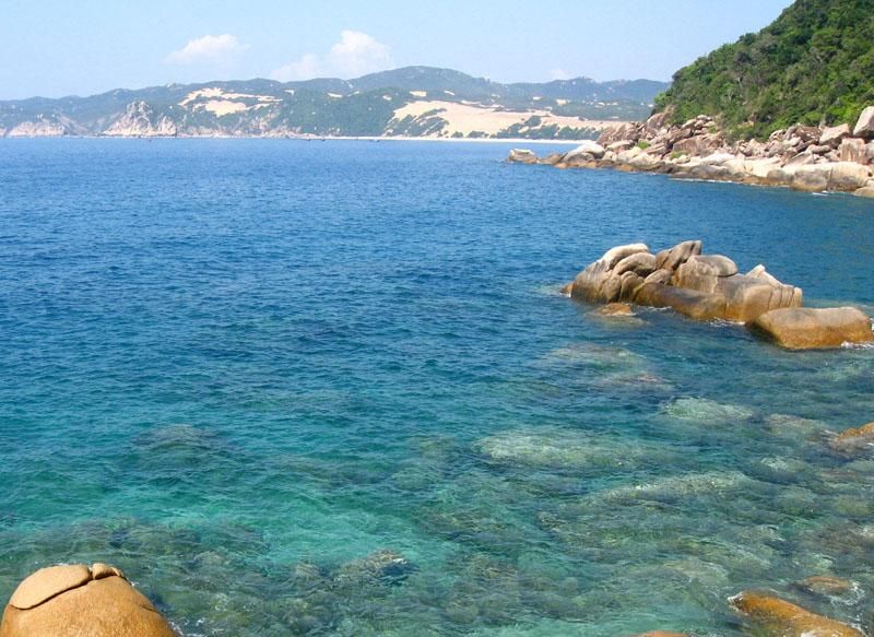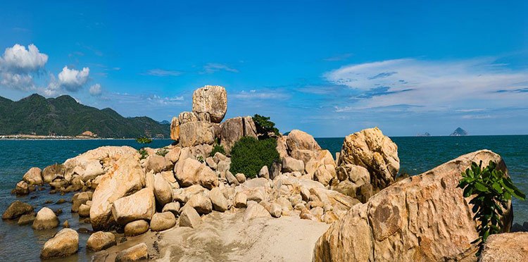 Du khách sẽ không thể nào quên được vẻ đẹp hoang sơ non xanh nước biếc cùng với bãi biển cắt trắng trải dài mênh mông hấp dẫn, gió biển mát mẻ và thiên nhiên chan hòa rực rỡ cùng màu sắc đa dạng nơi Vịnh Vân Phong.