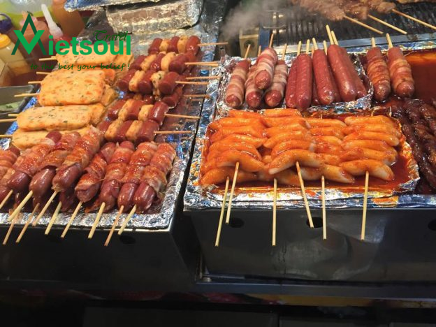 – Myeongdong – khu phố đi bộ, ẩm thực đường phố, các cửa hàng thời trang cũng tập trung hết tại đây. Đi hết khu này chắc mất cả tuần. Đồ ăn đường phố thường tập trung nhiều nhất ở khu Myeongdong, dọc 2 bên đường, lối đi tràn lan các loại đồ ăn để bạn có thể thử thoả thích. Lưu ý là đồ ăn đường phố cũng chả hề rẻ. Tầm 70 nghìn – 200 nghìn /xiên tuỳ vào đồ ăn.