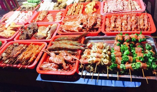 – Ăn đêm, ăn vặt: ở Sapa có rất nhiều quán đồ nướng ban đêm, thịt xiên, thịt lợn bản, thịt bò quấn rau cải mèo, chả cá hồi, chả tôm, chả mực, lòng phèo, cơm lam, rượu ngô, rượu sán lùng, rượu táo mèo… Nói chung là cứ bước chân vào quán đồ nướng thì thoải mái lựa chọn, đồ ở đây có nhiều loại, mỗi thứ một vị rất riêng nhưng lại có điểm chung là món nào cũng ngon hết, đi cách quán 20m đã thấy thơm lừng, ngồi cạnh bếp than hồng nghi ngút khói ăn mấy món nướng, uống một chén rượu ngô, rượu sán lùng còn gì tuyệt vời hơn. Một trải nghiệm nhất định bạn không nên bỏ qua khi đi du lịch Sapa.