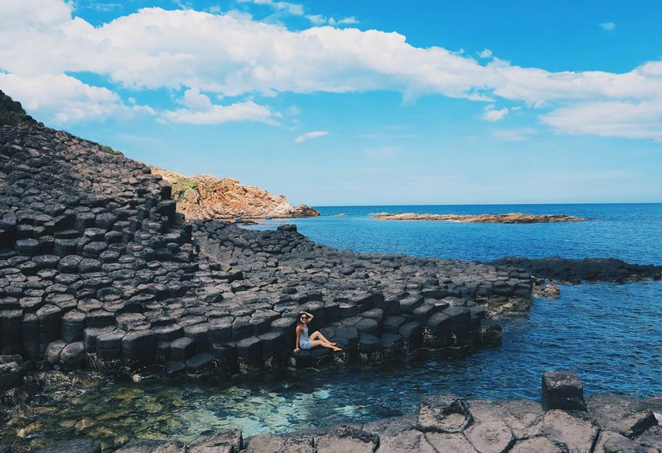 Ghềnh Đá Đĩa có các khối dung nham màu đen nhìn hay hay. Ghềnh Đá Đĩa đẹp lắm ạ, ngồi ở đây không muốn về đâu ạ. Ngồi nhìn ra biển thôi thấy bình yên lắm ạ. Vé vào là 20k/ng và gửi xe hết 3k